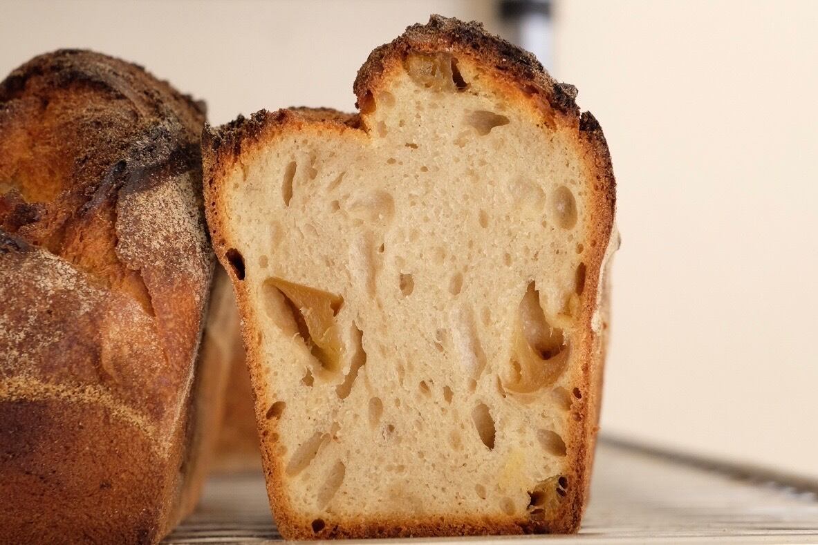 ブリオッシュ生地に旬なりんごを合わせて焼きました。